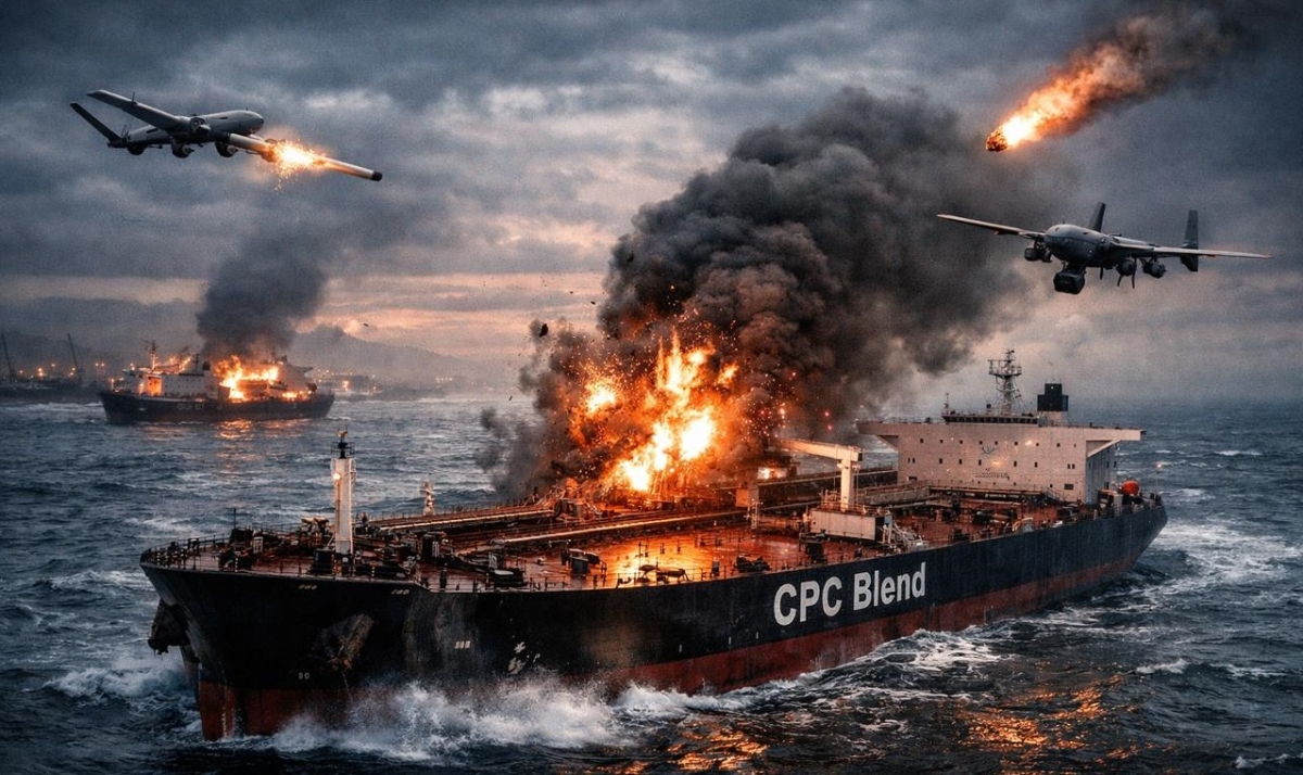 В Чёрном море дроны атаковали сразу несколько танкеров, которые должны были загрузить казахстанскую нефть на терминале Каспийского трубопроводного консорциума (КТК). По данным Reuters, под удар попали суда, работавшие с поставками нефти с месторождений Тенгиз и Карачаганак, при этом официально речь идёт о легальной нефти марки CPC Blend, не подпадающей под санкции. Эксперт нефтегазовой отрасли Олжас Байдильдинов в интервью SHYNDYK.KZ отмечает, что масштаб атак указывает не на случайный инцидент, а на целенаправленное воздействие на экспортную логистику. По его оценке, происходящее уже отражается на добыче, страховании перевозок и создаёт прямые риски для бюджета Казахстана.
