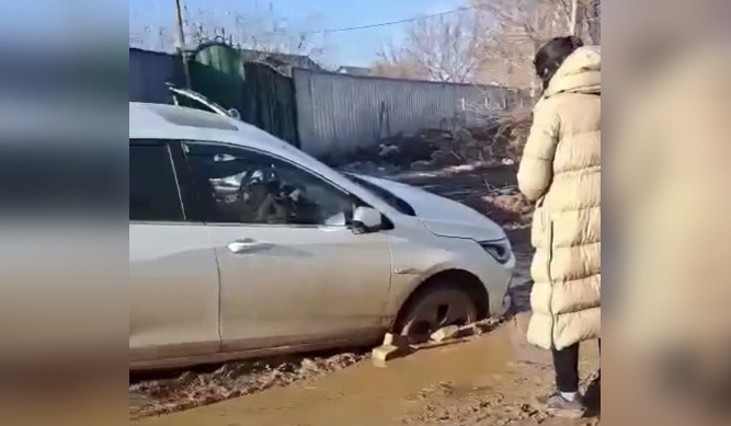На видео, опубликованном общественником Ильзатом Акчуриным, видно, как машины буквально уходят под землю. Особенно сложная ситуация на улице Болашак — передвигаться по селу стало опасно как для водителей, так и для пешеходов.