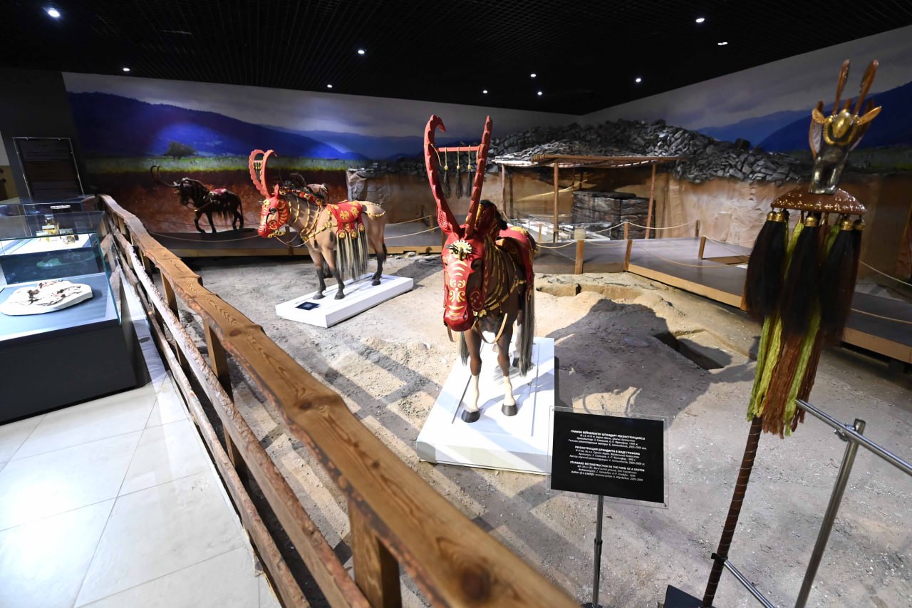 Главы государств осмотрели залы древнетюркской цивилизации, древнего искусства и технологий Великой Степи, традиционной культуры казахов, где ознакомились с редкими историческими экспонатами.