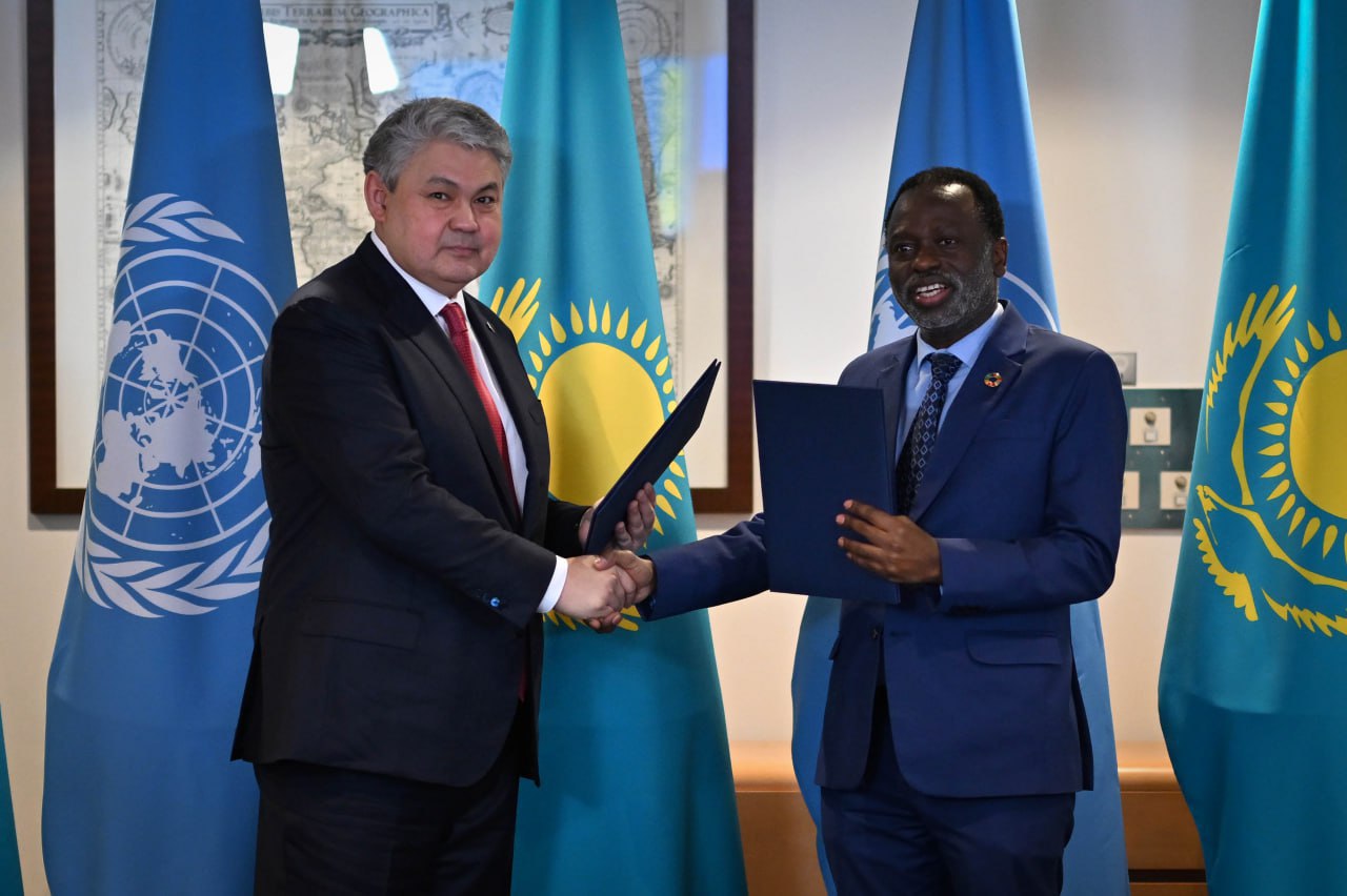 Документ подписали министр иностранных дел Ермек Кошербаев и заместитель генерального секретаря ООН — ректор университета Чилидзи Марвала.