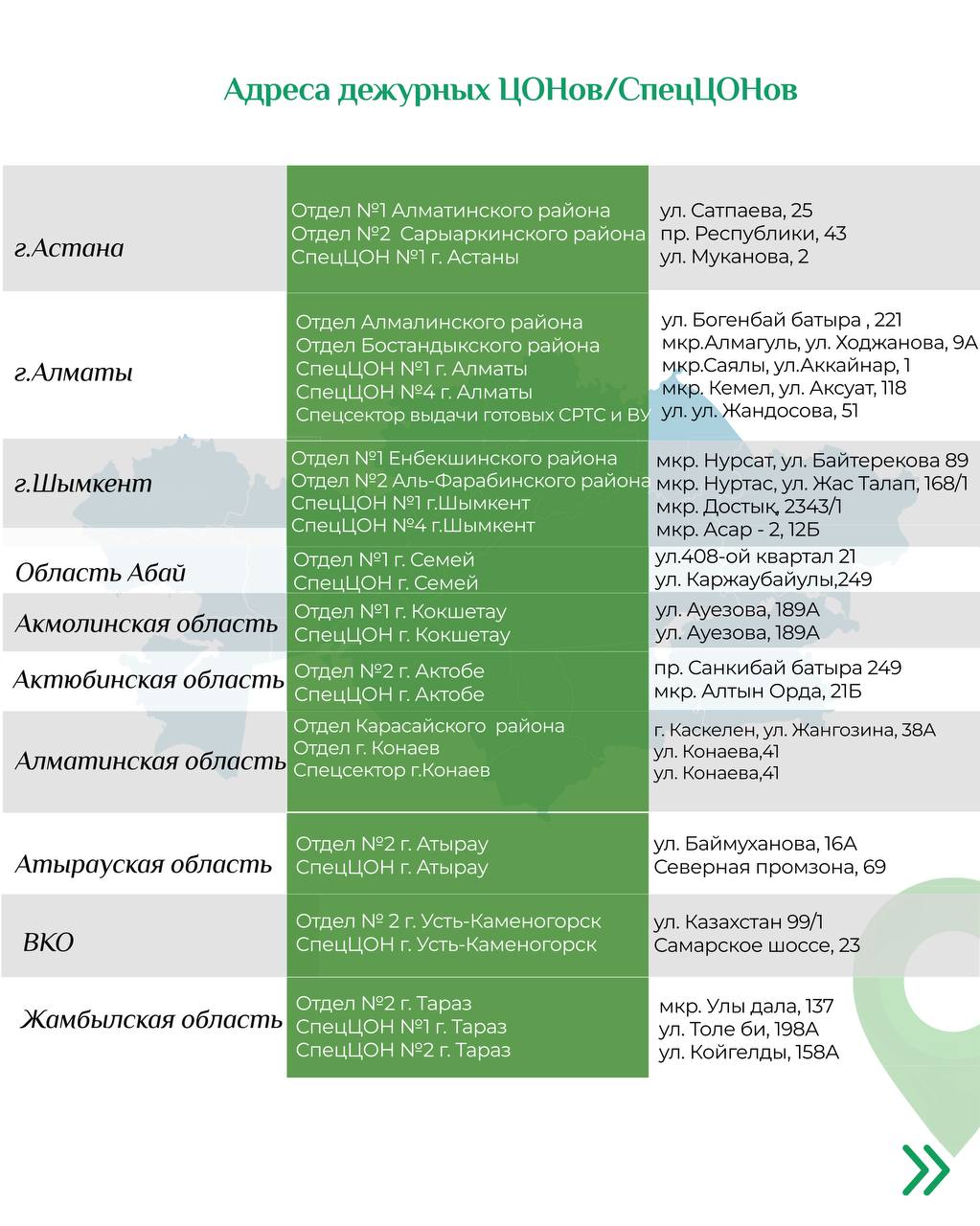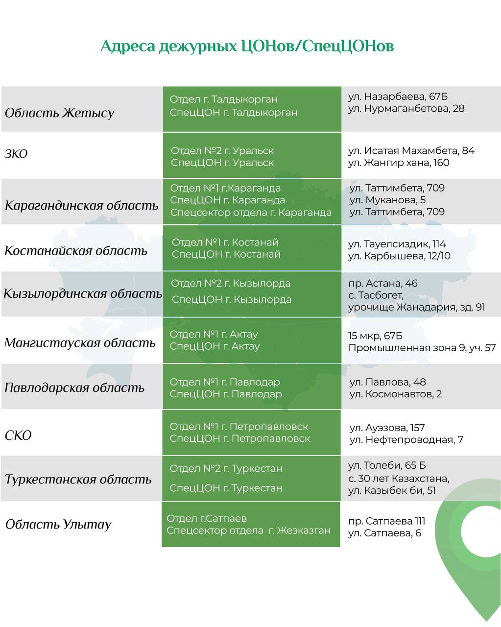 С 3 января в ряде регионов и городов сменятся адреса дежурных ЦОНов и спецЦОНов, передаёт SHYNDYK.KZ.