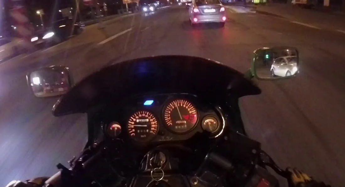 На кадрах, снятых одним из мотоциклистов, группа его единомышленников на огромной скорости пронеслась по ночному городу.