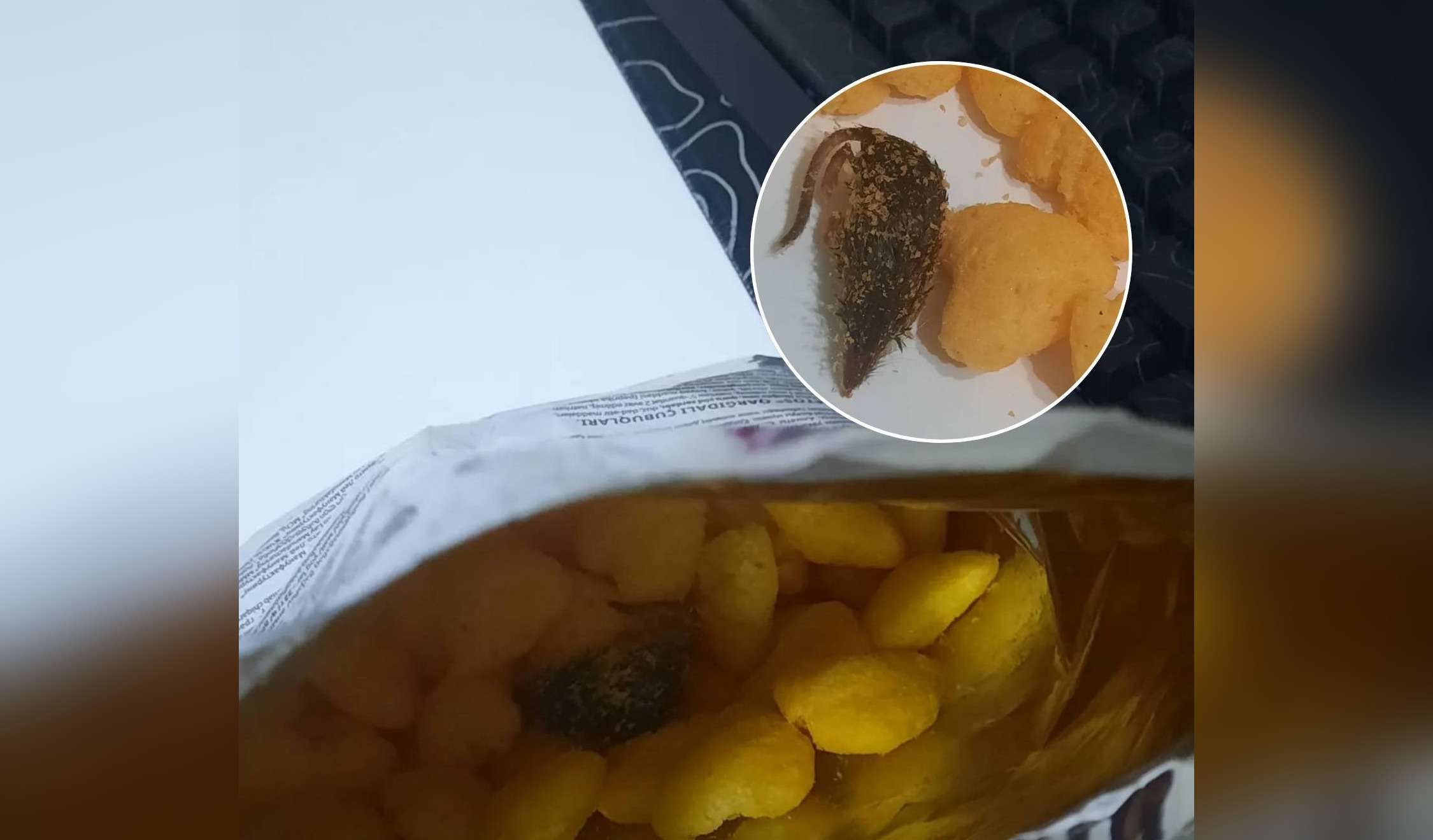 По её словам, дочь ела сырные снеки Cheetos, после чего заметила что-то странное в упаковке. При внимательном осмотре родители обнаружили внутри продуктовой упаковки мышь.