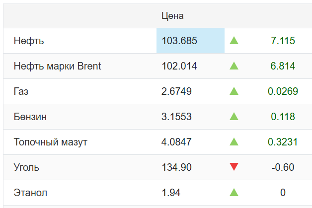 На момент написания новости нефть сорта Brent торговалась по 103,6 доллара, а WTI ― 102 доллара.