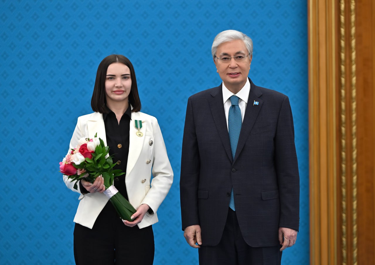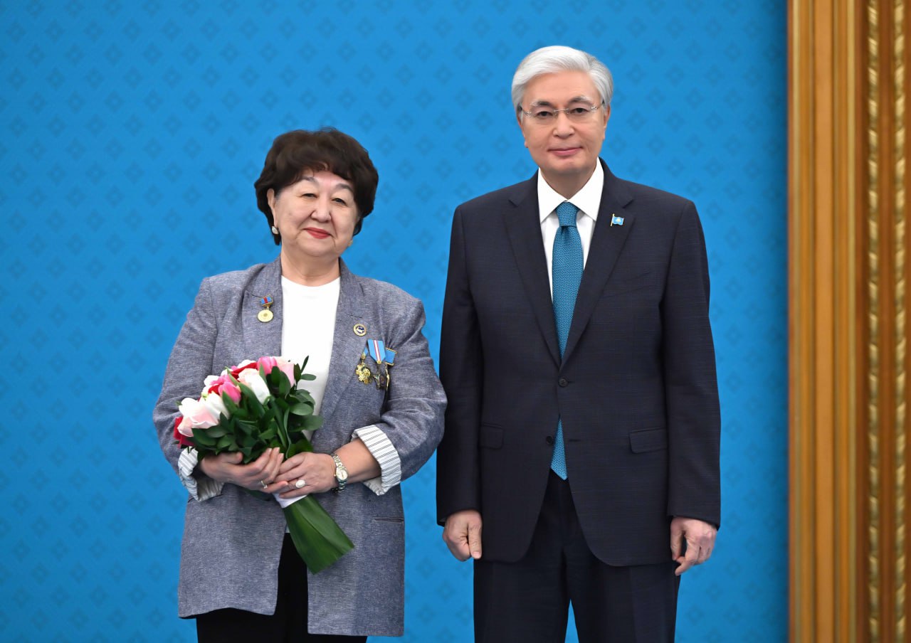 Президент подчеркнул, что на месте церемонии награждения присутствовали учителя казахского языка и литературы, которые вносят существенную лепту в воспитание образованного, креативного и патриотичного поколения. Опытный педагог Жанна Левкович удостоена ордена «Құрмет», а молодой учитель Мария Сурина – медали «Шапағат».