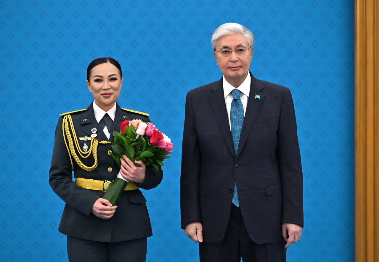 Немало представительниц прекрасного пола работают на ответственных должностях, сопряженных с трудностями и риском. Храня верность долгу перед Родиной, многие из вас стоят на страже Закона и Порядка. Более половины судейского корпуса страны – женщины. В структурах гражданской защиты, прокуратуры, органов внутренних дел, обороны и специальных служб трудятся более 45 тысяч женщин. Недавно в Дубае прошли соревнования спецподразделений SWAT Challenge. На этом престижном международном турнире лучшей среди женщин стала наша сборная команда «Томирис», которая не оставила никаких шансов соперницам. В упорной борьбе девушки показали пример стойкости и мастерства. Безусловно, эти качества присущи только настоящим героиням, продолжающим традиции Алии Молдагуловой и Маншук Маметовой»”, – сказал президент.