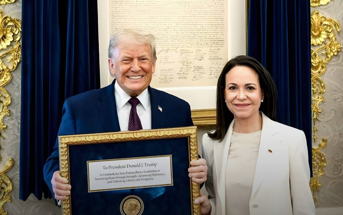 15 января 2026 года Мачадо встретилась с президентом США в Белом доме и символически вручила ему золотую медаль своей Нобелевской премии в знак признания его «вклада в свободу венесуэльцев» и общей борьбы за демократию.