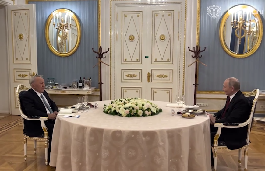 В Кремле состоялась встреча президента России Владимира Путина с бывшим президентом Казахстана Нурсултаном Назарбаевым. Видео встречи опубликовано в официальном Telegram‑канале Кремля, передаёт SHYNDYK.KZ.
