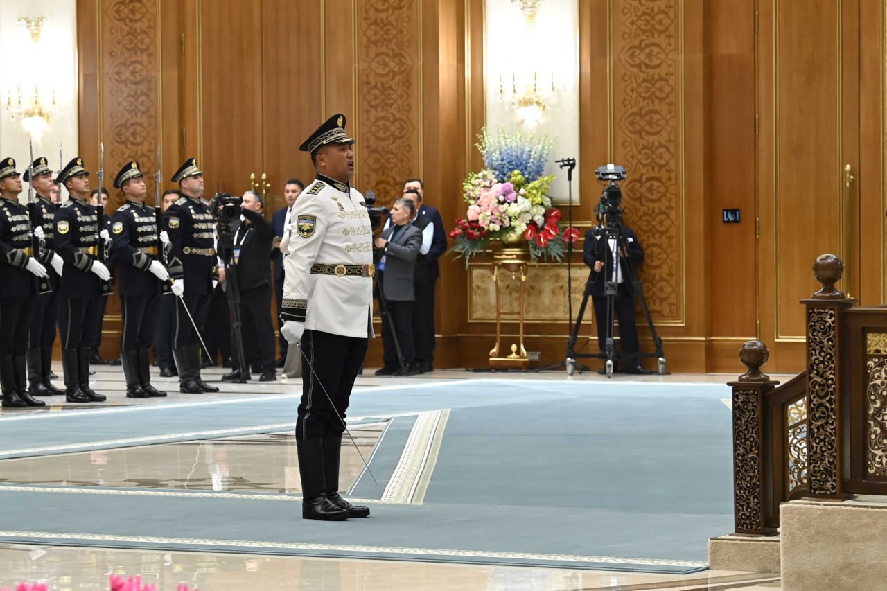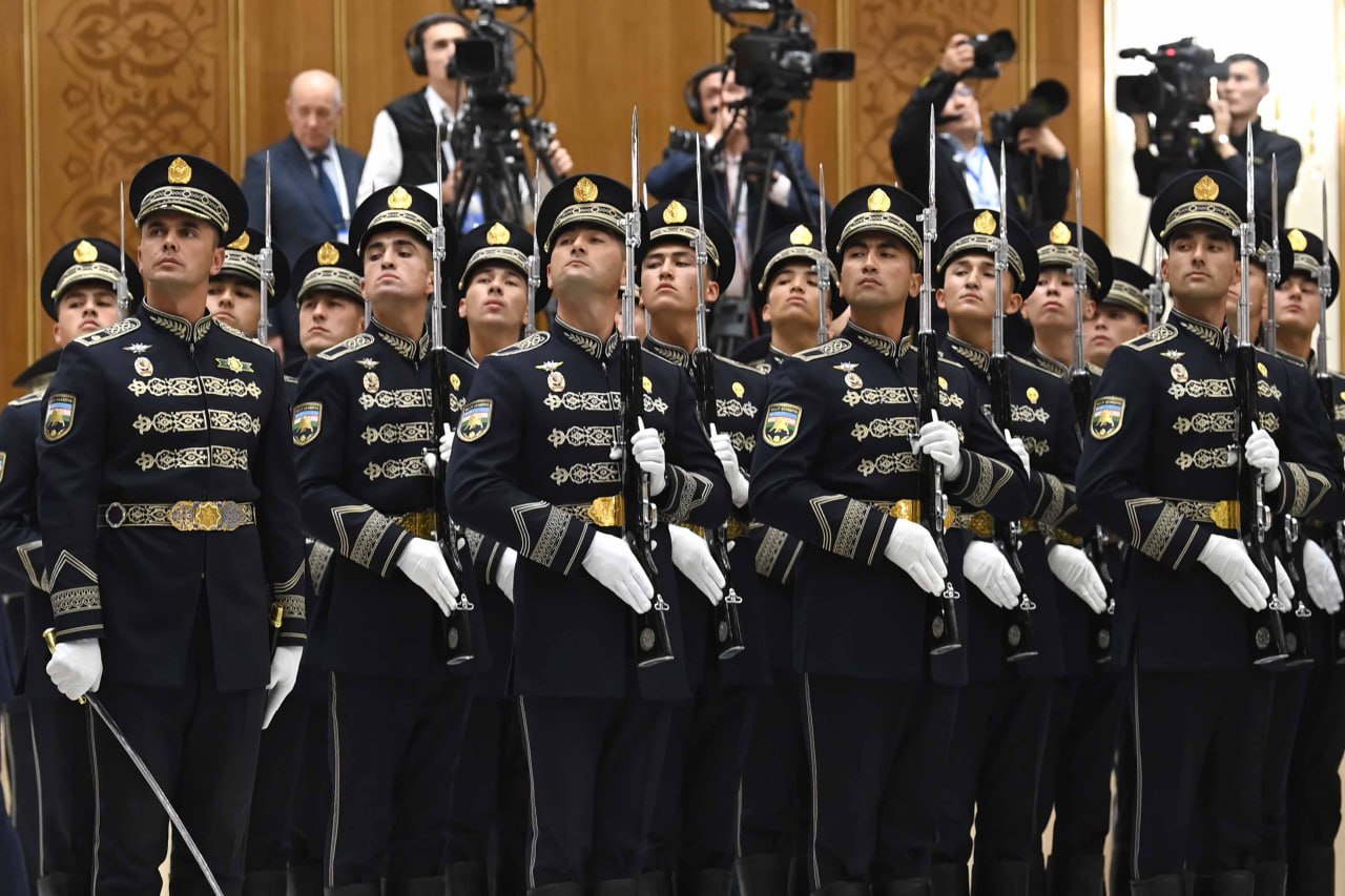 Были исполнены национальные гимны Казахстана и Узбекистана, а также заслушан рапорт начальника почетного караула.